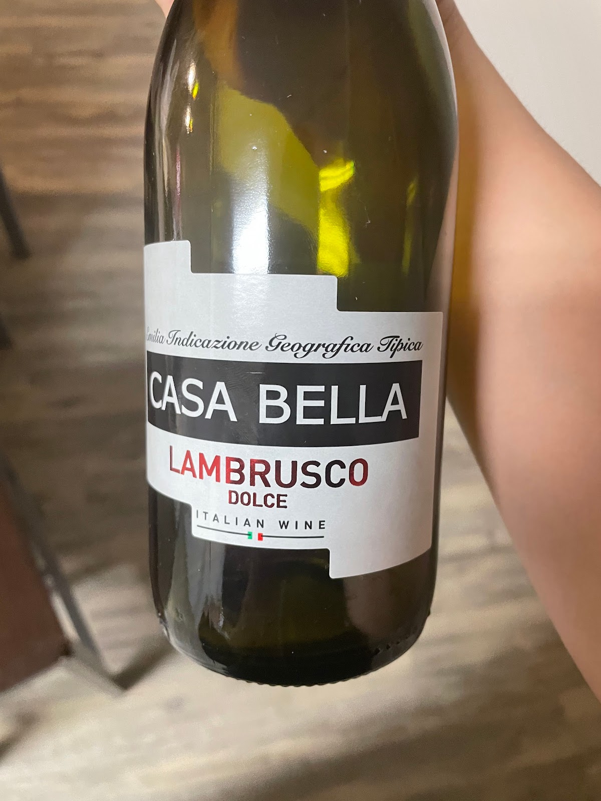 The Casa Bella Lambusco Rosso Dolce is a northern Italian wine made in the region of Emilia-Romagna in the year of 2021. The grape is lambrusco grapes, and it costed around 8 dollars. According to a review on Vivino, the wine has a "blueberry, cranberry" taste to it. My own experience with the wine was that it smelled like raspberry, blackberry and had some acidity like green apple. When I tasted it, since it was a sparkling red wine, it has poppy and had a raspberry and lemon-ish taste to it. I had it with hotpot, and I did not think it added and in my opinion kind of detracted the taste. The hotpot had sort of masked some of the taste so I could not get a completely accurate tasting.